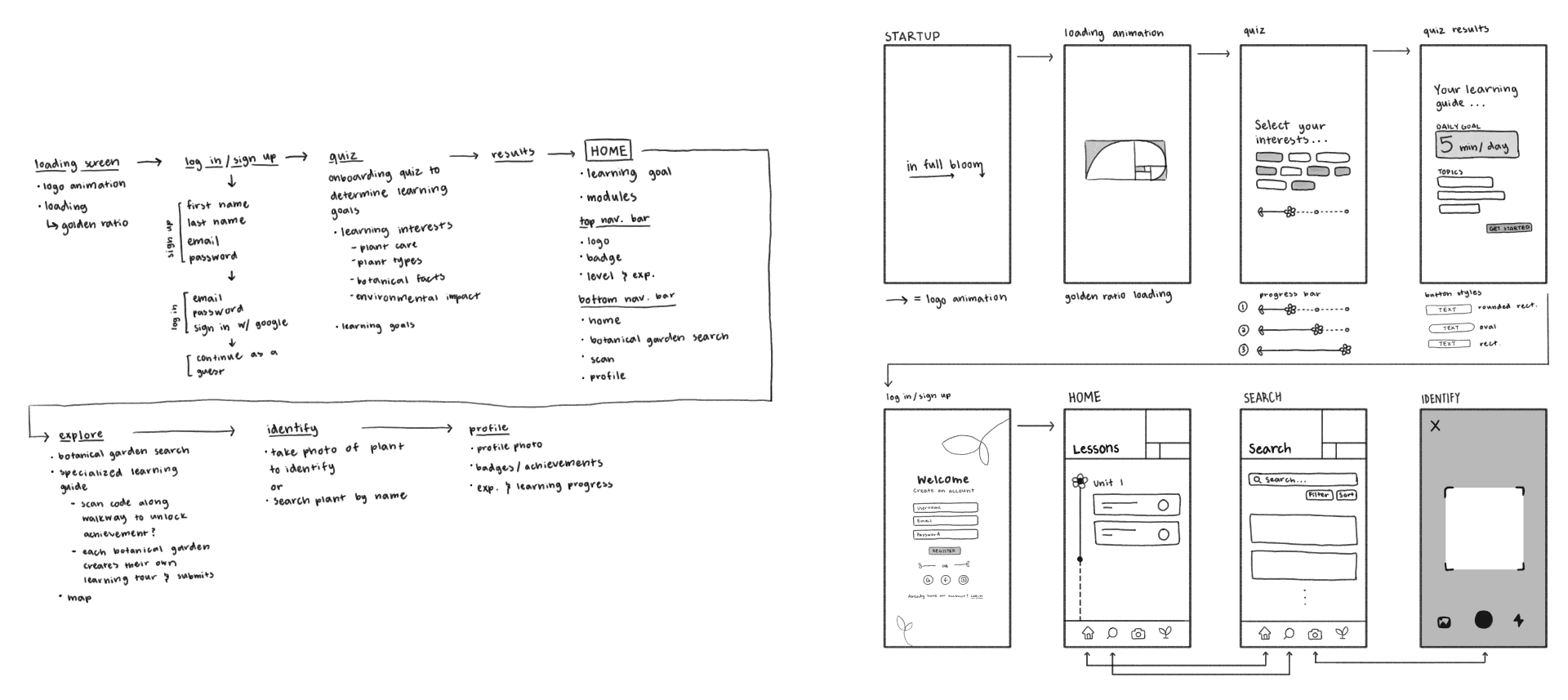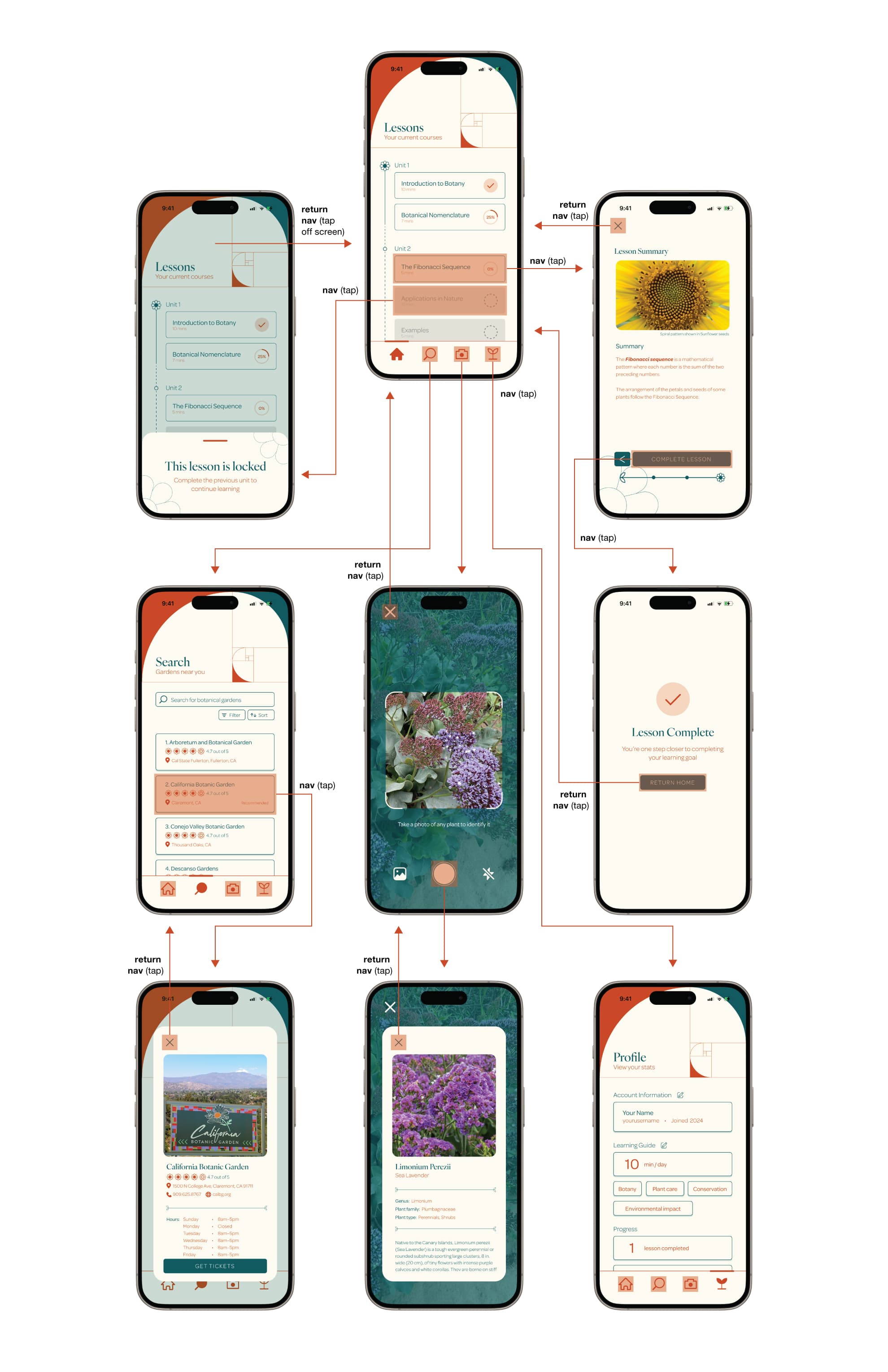 The purpose of this project was to transform my In Full Bloom booklet (see project on site) into an app. While a printed book remains static, an app is interactive and can be customized based on the user's needs. In Full Bloom is a botanical garden app for users interested in botany. It offers personalized lesson plans tailored to users' interests and goals, along with a plant identification feature. Users can explore nearby gardens, identify plants with their camera, and learn as they discover the natural world around them.