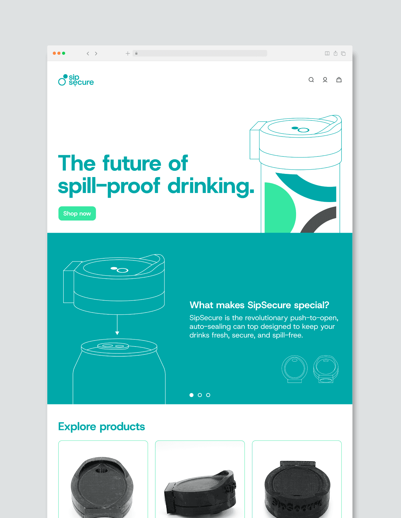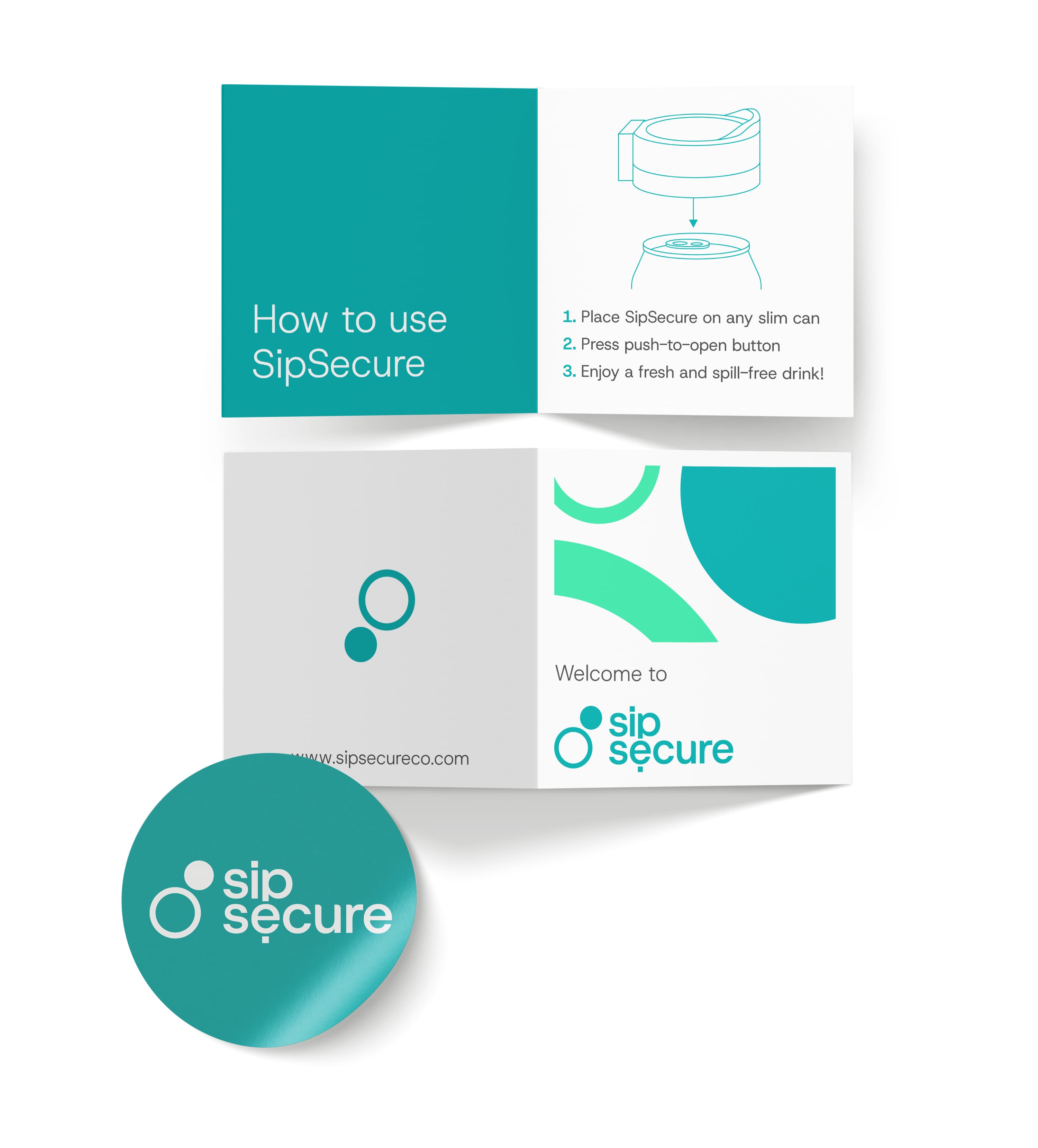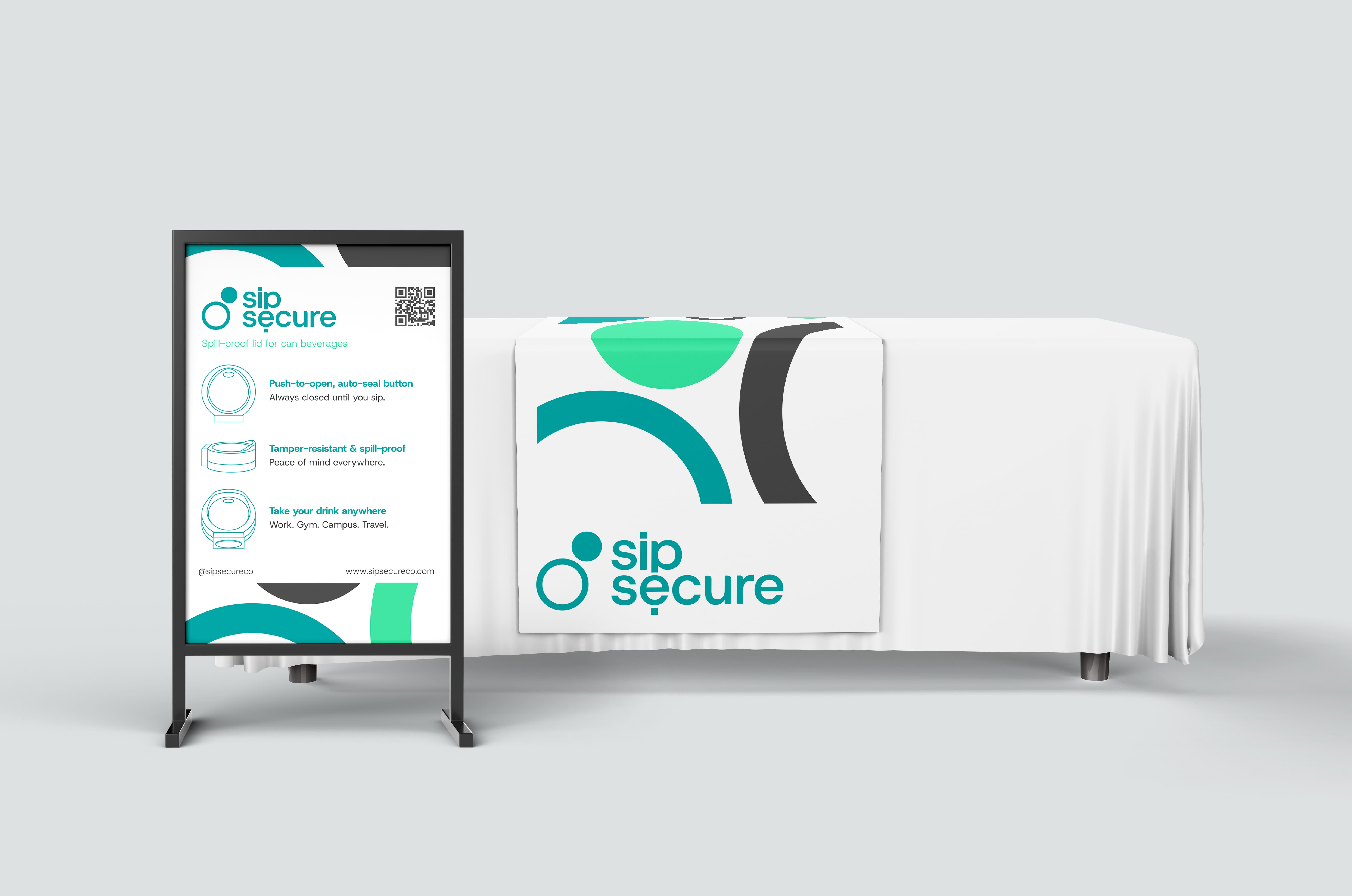 For this project, I created branding for SipSecure, a can lid designed to keep beverages sealed, fresh, and spill-free for on-the-go users. The product was designed with safety and eco-friendliness in mind and has an auto-seal spring, push-to-open function, and reusable materials. My design direction focused on translating these benefits into a cohesive brand: a clean, rounded logo, fresh color palette, and packaging that clearly communicates features. From the box and instructional booklet to tabling assets and a responsive website, the visuals emphasize clarity, usability, and a premium yet approachable aesthetic.