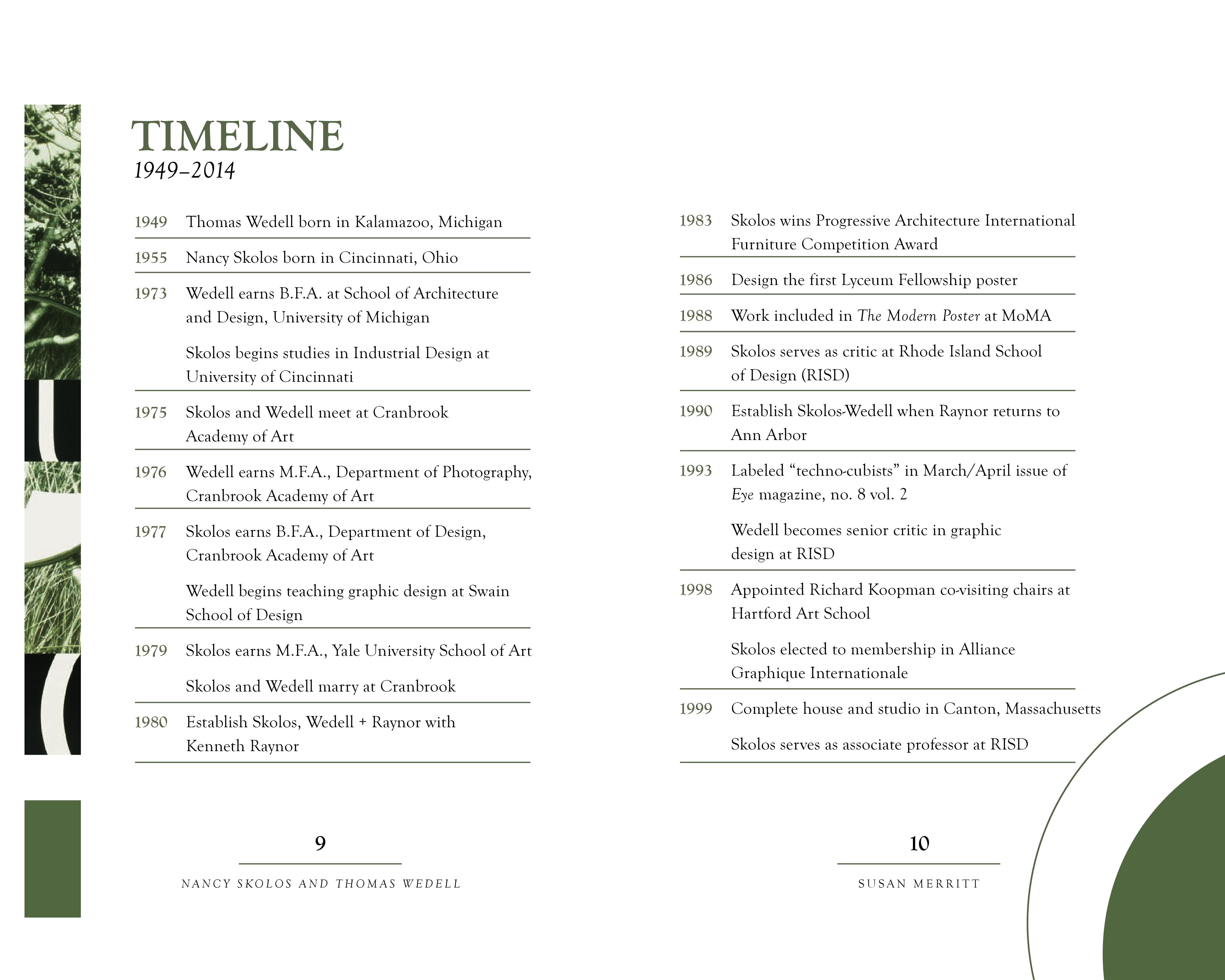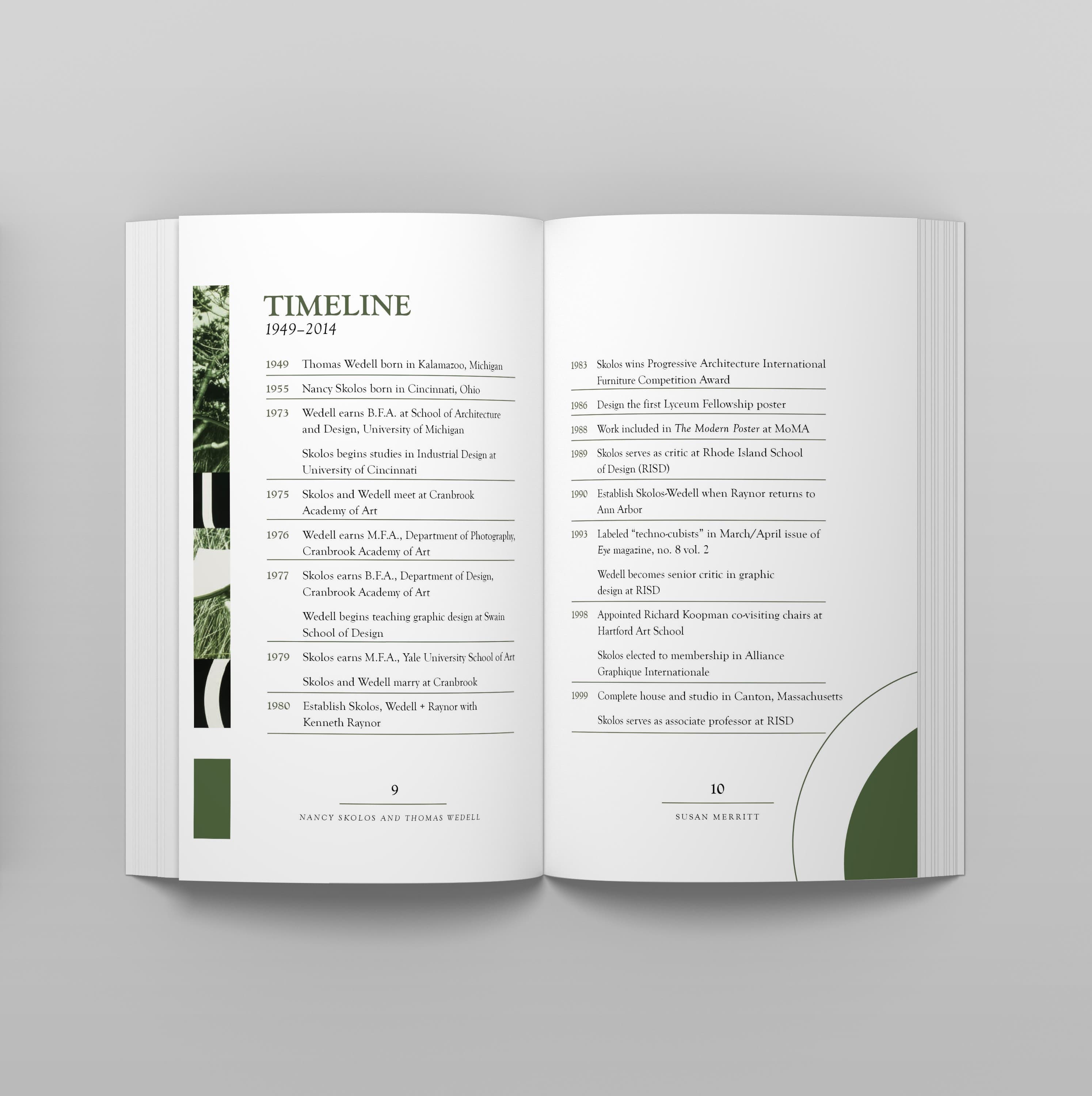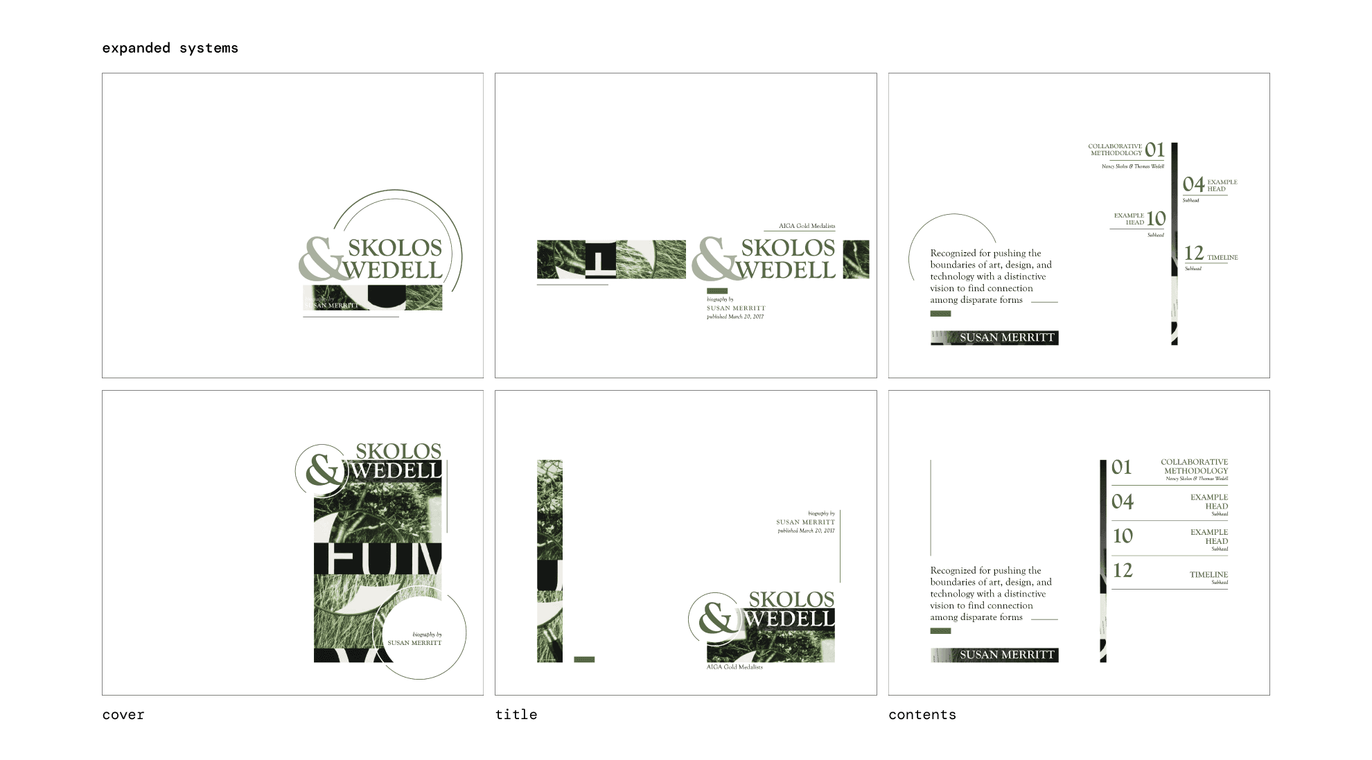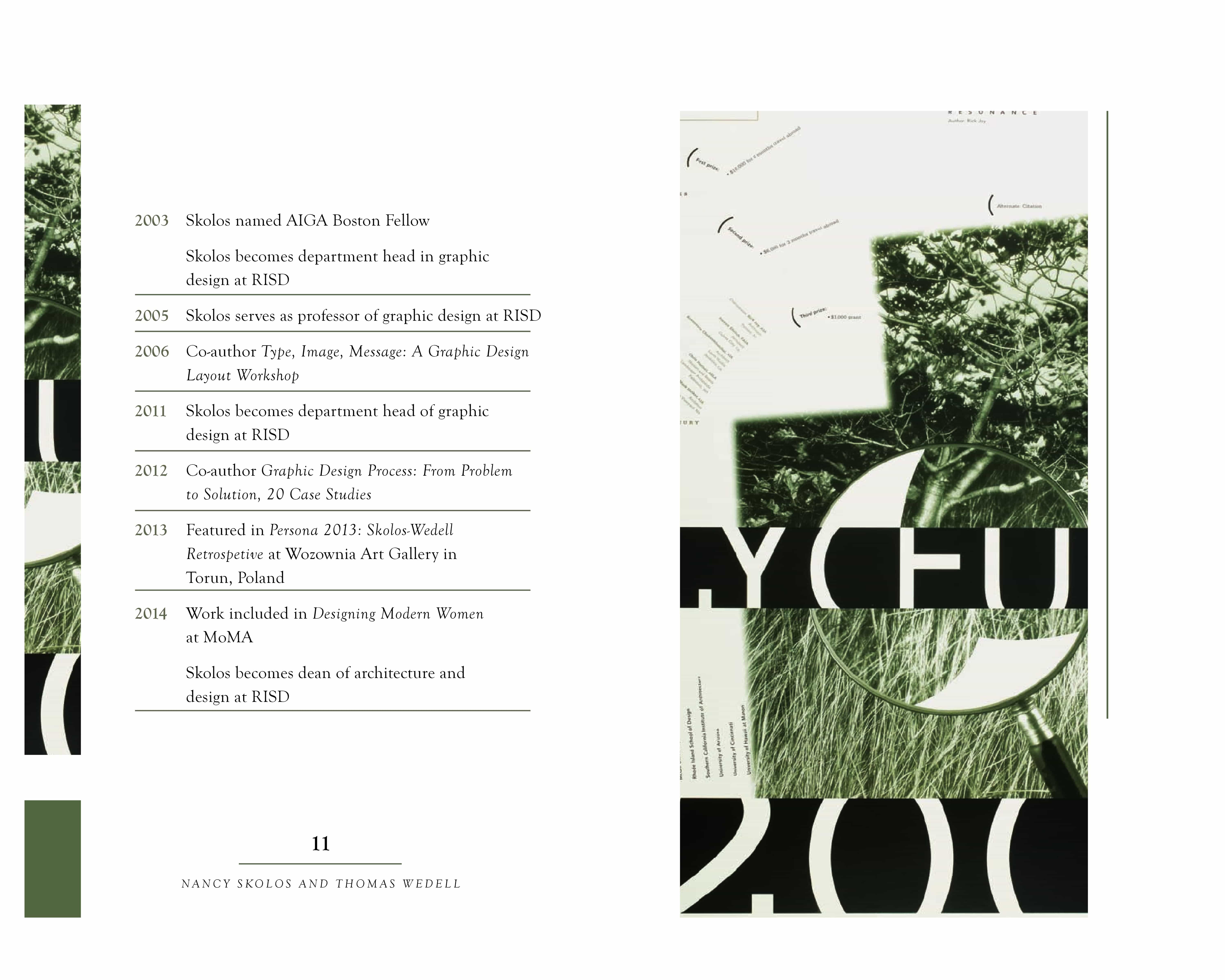 The purpose of this project was to apply the fundamentals of typography to a short, multi-page book. The book’s content, written by Susan Merritt, details the lives of the married couple and AIGA finalists Nancy Skolos and Thomas Wedell. The images featured in the spreads are designs by Skolos and Wedell. A cohesive design system was used throughout the book to ensure consistency and smooth navigation.